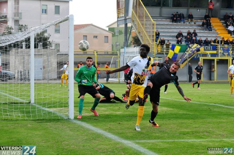 Si lotta su ogni pallone, l’impegno non manca da una parte e dall’altra e non mancano gli spunti e le emozioni. Anche se il punteggio rimane bloccato sullo 0 a 0. Al 41’ clamorosa azione da gol sciupata dalla Viterbese: su respinta di pugno di Iannarilli, pre il contropiede Marano che smarca Neglia il quale manda al tiro Diop il cui diagonale finisce sul fondo a fil di palo. I gialloblu insistono e un minuto dopo Carboni vola a deviare in angolo una velenosa staffilata di Belcastro dalla breve distanza. Sul capovolgimento di fronte il contropiede è aperto da Ragatzu che trova praterie ma la difesa gialloblu è brava a non mandare al tiro né l’attaccante né altri suoi compagni.