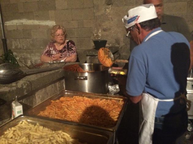 Quest'anno sono stati preparati e consumati ben 100 chili di pasta, condita con 120 chili di sugo all'amatriciana, ovviamente offerte dai costruttori Contaldo Cesarini e Vincenzo Fiorillo. A stemperare l'arsura ci hanno pensato Arianna e Gianluca del Red Rose Caffè con 50 litri di Nero d'Avola, mentre i palati sono stati addolciti dai 600 bignè della pasticceria Garibaldi.