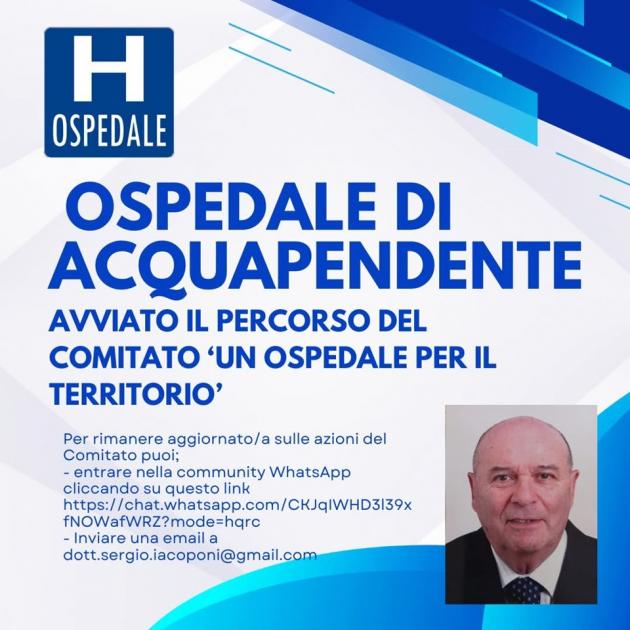 ACQUAPENDENTE - Il dottor Sergio Iacoponi, presidente del comitato “Un Ospedale per il territorio” di Acquapendente invia una nota informativa alle popolazioni alto viterbesi: “Da poco più di due mesi ci siamo ufficialmente costituiti come comitato “Un Ospedale per il territorio”. Il nostro silenzio è stato soltanto verbale; questo periodo è infatti servito per compiere alcuni passaggi che abbiamo ritenuto opportuni e per programmarne altri da attuare quanto prima. Sin dall’inizio (e così sarà per tutto il prosieguo della nostra attività) abbiamo mantenuto ferma l’attenzione sull’unico obiettivo per cui ci siamo associati, restituire al nostro presidio ospedaliero la piena dignità di ospedale, affinché torni ad essere un punto fermo di riferimento per prestazioni quali-quantitative di elevato livello, come lo è stato negli anni precedenti'.
