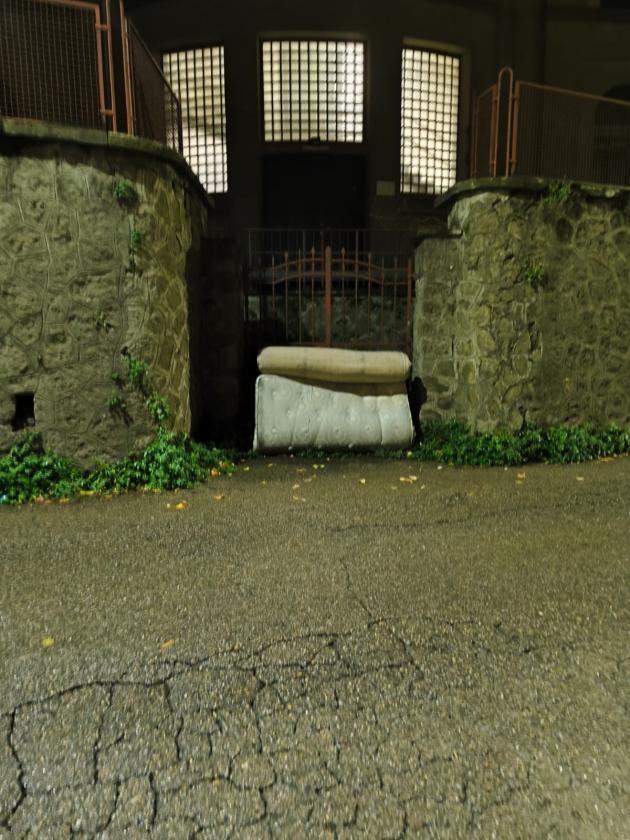 VITERBO - Un materasso è stato abbandonato davanti all'Istituto tecnico commerciale Paolo Savi di Viterbo: ancora episodi di degrado a ridosso delle mura, e non è il primo negli ultimi giorni.