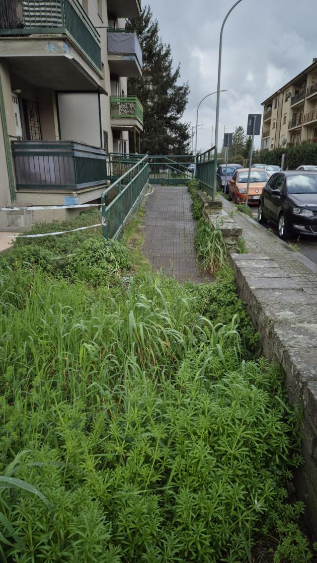 'Anche dopo l'intervento della famosa 'messa in sicurezza' da parte del Comune, qui la situazione in via Tagete 23 è sempre disastrata' racconta uno dei cittadini che abita la palazzina 'Erbaccia alta nel giardino circostante, dove i disabili hanno difficoltà all'accesso nel fabbricato, in più hanno circoscritto l'area, per cui neanche noi abbiamo l'autorizzazione per gli eventuali interventi di pulizia'.