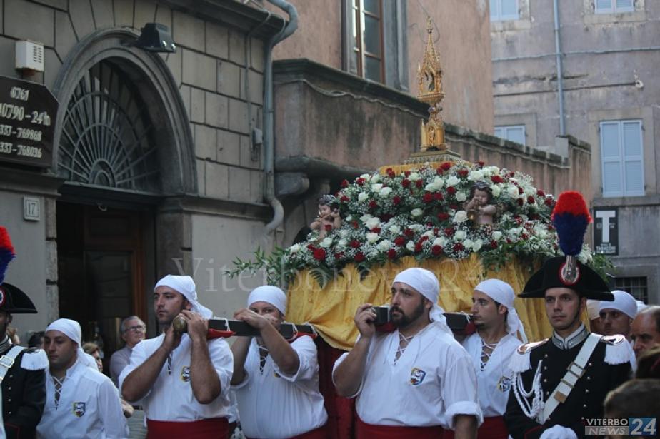 Le cerimonie inizieranno la mattina, alle 10,30, quando il cuore di Santa Rosa verrà esposto al santuario della Santa; alle 12, in piazza del Comune, si svolgerà la tradizionale consegna della ''Mazza del Maggiordomo'', lo storico simbolo del potere cittadino nelle processioni viterbesi dei secoli passati, da parte del sindaco Leonardo Michelini agli organizzatori del corteo.