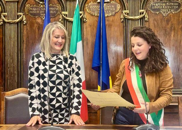 VITERBO - Attestato di merito sportivo ad Annamaria Olivieri. La sindaca Chiara Frontini ha conferito il riconoscimento all'atleta viterbese per essere stata la prima donna in assoluto di Viterbo e dell'intera provincia ad aver raggiunto la vetta del Monte Bianco lo scorso 29 luglio. 'Un'impresa straordinaria da ammirare – ha sottolineato la sindaca Chiara Frontini durante la cerimonia –. Una conquista storica quella raggiunta con grande coraggio da Annamaria, che testimonia grande tenacia e determinazione e trasmette un potente senso di libertà'.