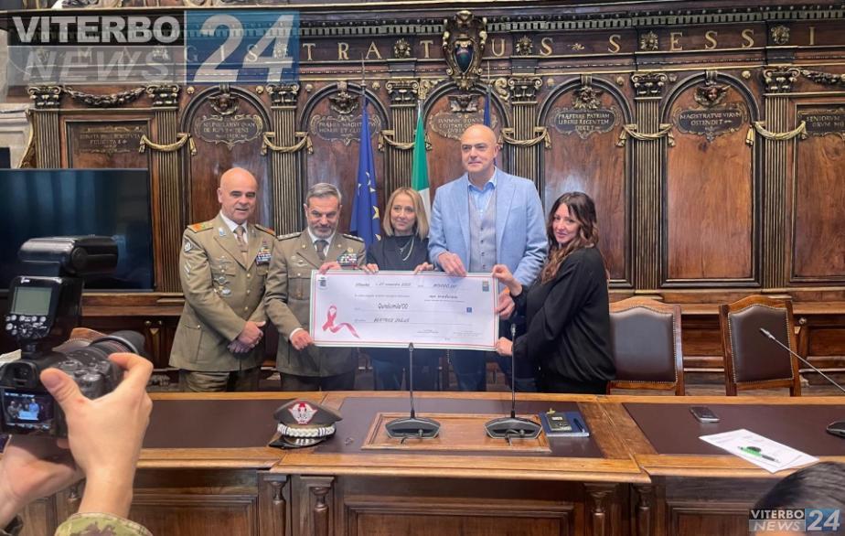 VITERBO – Questa mattina, nella sala consiliare di Palazzo dei Priori, si è svolta la cerimonia di consegna dei fondi raccolti in occasione del concerto della Banda musicale dell’Esercito italiano, tenutosi lo scorso 27 novembre al Teatro dell'Unione.