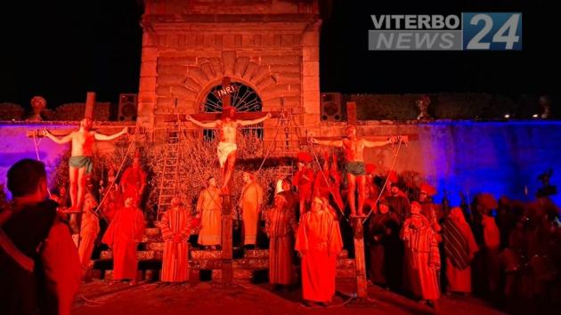 BAGNAIA – Durante la giornata di ieri, venerdì 3 aprile, alle ore 21.30 è iniziata la rievocazione storica della passione di Cristo a Bagnaia, chiamato dai cittadini “Sera da bara”. L’evento, di grande importanza per il territorio, ha visto la partecipazione di oltre 300 figuranti divisi in varie squadre che hanno animato la serata, ricostruendo nel modo più veritiero possibile la scena della morte di cristo, curata nei minimi dettagli. Tra i personaggi troviamo diverse figure bibliche rilevanti insieme a soldati romani e semplici popolani.