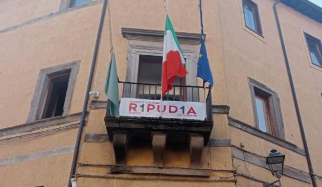 CARBOGNANO - Il Comune di Carbognano, con delibera di Giunta, ha aderito ufficialmente alla campagna nazionale “R1PUD1A” promossa da Emergency, unendosi agli altri oltre 300 Comuni italiani aderenti e decidendo di esporre presso il Palazzo Comunale uno striscione con la scritta “Questo Comune R1PUD1A la guerra”, per ribadire con forza il rifiuto di ogni forma di conflitto, in coerenza con l’articolo 11 della Costituzione Italiana.