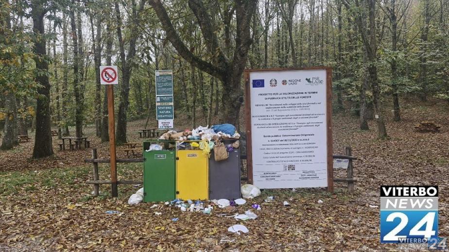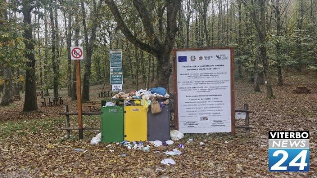 VITERBO – Sulla Cimina, ciò che dovrebbe contribuire a mantenere pulita la faggeta si sta trasformando nel suo contrario: un ammasso di rifiuti e degrado.