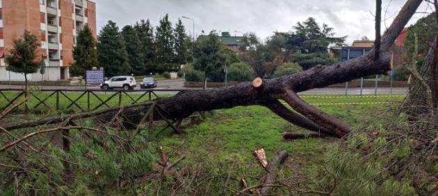 CIVITA CASTELLANA - Nei giorni scorsi a causa delle forti piogge e raffiche di vento un grosso albero di pino è crollato sulla staccionata del recinto area cani in via Minio, invadendo parte della strada adiacente. Fortunatamente la caduta non ha causato ferimenti o danneggiamenti a oggetti, tuttavia sul caso si sono sentiti di intervenire i consiglieri comunali Valerio Biondi del M5S e Cavalieri e Pinardi di Rifondazione comunista: 'Quello che è successo non è un fatto banale - hanno spiegato i consiglieri - infatti per poco non si è sfiorata una tragedia. Un albero che cade in aree pubbliche, abitualmente frequentate da famiglie, bambini, anziani deve essere un episodio da prendere in seria considerazione'.