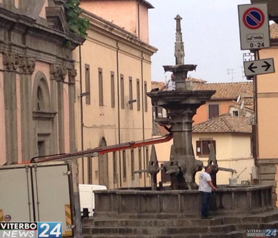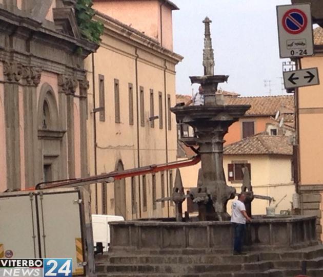 Per consentire lo svolgimento dei lavori, l’area di piazza Fontana Grande è stata delimitata e riservata ai mezzi della ditta incaricata. È stato inoltre autorizzato il transito dei veicoli necessari all’interno delle mura cittadine e nelle zone a traffico limitato per il trasporto dei materiali.
