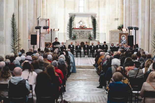 Il Coro Arké, diretto da Giovanni Cernicchiaro, ha saputo valorizzare ogni pagina con sensibilità e rigore, costruendo un percorso profondamente comunicativo. Dalla purezza rinascimentale di Palestrina, con Jesu Rex Admirabilis e Sicut cervus, alla tensione dello Stabat Mater di Kodály, fino alle atmosfere sospese e contemplative di Tavener e Pärt, ogni brano è stato restituito con cura e intensità. Emozionante l'inserimento delle letture agostiniane, che hanno dato voce al senso più profondo del concerto, accompagnando l'ascolto con parole capaci di illuminare il mistero della Passione. La voce di Calefati ha contribuito a creare un filo narrativo discreto ma incisivo. La mirabile cornice di Santa Maria in Castello ha amplificato l'impatto dell'esecuzione, favorendo un ascolto attento e condiviso. Con questo appuntamento si chiude un'edizione del festival 'Iubilemus Deo' che ha saputo unire qualità artistica, partecipazione e valore spirituale, confermandosi come una proposta culturale capace di parlare al territorio e di creare momenti autentici di grande livello. Un itinerario che, concerto dopo concerto, ha dimostrato come la musica sacra possa ancora essere esperienza viva, capace di toccare, interrogare e unire.