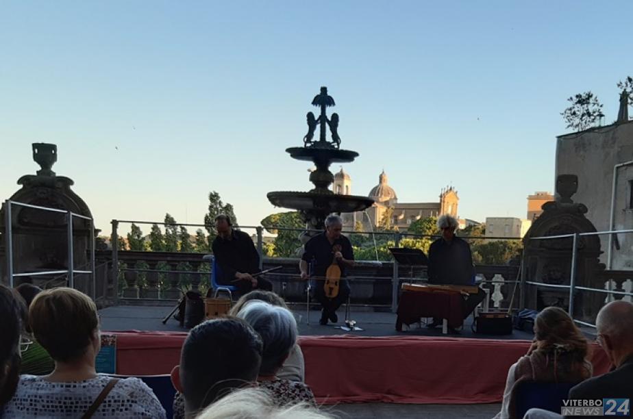 Nella cornice intima del cortile rinascimentale, tra logge, sculture e fontane, nell'armonia di un'alba aperta ai bagliori di Valle Faul e della cupola di Santa Maria della Trinità, è stato possibile sperimentare un risveglio sinestetico unico. Le sonorità musicali e gli scrosci d'acqua, la freschezza delle fronde sotto il bel pino, lo spessore del peperino e la levità dello spazio aperto, si sono unite infatti a formare uno spettacolo di rara bellezza.