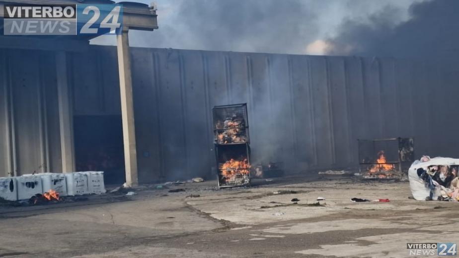 • La propagazione: Il fuoco si è rapidamente esteso all'interno del capannone, alimentato da residui plastici e stock di abbigliamento usato presenti nel deposito.