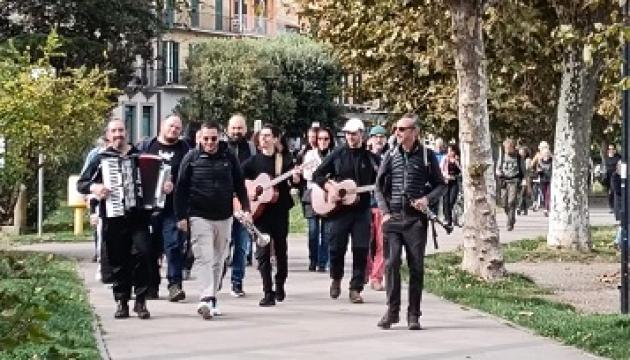“Il bello della carovana – spiega Gregori – è incontrare questi borghi della Tuscia, attraversando percorsi storici, campagne e boschi, e arrivare sempre al contatto umano. A Capodimonte un signore ci ha guidato lungo il lungolago raccontandoci i suoi ricordi sulla pesca delle anguille, mentre a Marta un altro cittadino ci ha accompagnato intonando un canto dedicato al paese. Siamo stralunati, è il nostro stile, e la gente si avvicina incuriosita. Anche i concerti stanno andando molto bene: le persone ci ascoltano, sia all’aperto, come in riva al lago, sia al chiuso, come al Bistrot del Teatro San Leonardo a Viterbo”.