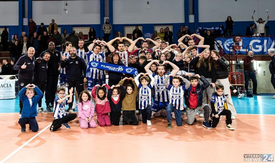 Al fischio di inizio delle signore arbitro Lucia Grassi e Elisabetta Zucconi, Victor Perez Moreno schiera Tuscania con Marrazzo in regia e capitan Buzzelli in diagonale, Borzacconi e Fantauzzo laterali, Festi e Simoni al centro, Rizzi libero. Coach Mattioli risponde con Leoni al palleggio e capitan Paoletti opposto, schiacciatori Poli e Mellano, centrali Caproni e Salvadori, libero Farfai.