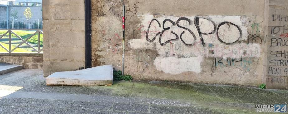 VITERBO - Materasso abbandonato proprio davanti a Porta S.Leonardo, a ridosso delle mura del centro storico: una zona appena riqualificata, con investimenti milionari, ma, che a quanto pare, non hanno insegnato niente ai cittadini meno usi alle convenienze sociali.