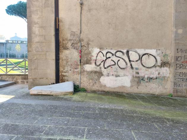 La mattian di lunedì un materasso ha accolto turisti, lavoratori e studenti che ogni giorno entrano dalla porta alle spalle di Santa Maria delle Fortezze, la zona appena riqualificata con un bellissimo parco, pratino ben curato, panchine e un palcoscenico degno delle migliori opere teatrali, i resti della chiesa di Santa Maria delle Fortezze, con l'abside, la pavimentazione secentesca e parte del colonnato; inoltre anche la nuova passeggiata intoro alle mura, con il grande marciapiedi sovrastato delle mura intatte e con la nuova illuminazione, tutto realizzato con un investimento milionario.