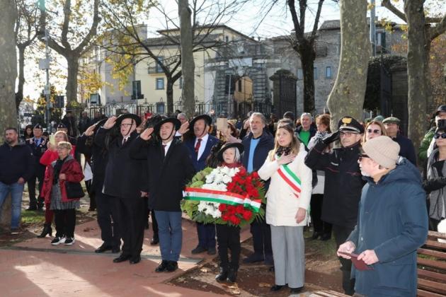 MONTEFIASCONE – Nella mattinata di oggi, giovedì 4 dicembre, le fanfare dei bersaglieri di Torre Alfina e Viterbo si sono ritrovate a Montefiascone per festeggiare una giornata tematica voluta fortemente dalla sindaca Giulia De Santis. Alle ore 10:30 i due raggruppamenti da Via Indipendenza sono entrati di corsa da Porta Pia posizionandosi a Piazza Vittorio Emanuele. Qui si sono esibiti in un concerto. Poi via lo sfilamento in corso Cavour per poi arrivare al Prato Giardino comunale dove sono stati resi gli onori ai caduti. La sindaca accompagnata dal presidente provinciale bersaglieri generale D. A. Amato ha deposto un omaggio floreale al monumento ai caduti. Al termine della cerimonia esibizione concerto Piazzale Roma in cui è stata apprezzatissima la scelta del Capo Fanfara viterbese Maurizio Severino di far suonare il piccolo Damian.