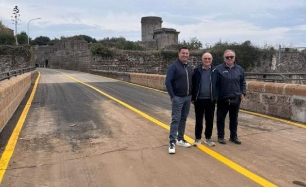 Nei giorni scorsi l’architetto Bruno Giovanale, direttore dei lavori, ha ufficialmente ricevuto la documentazione relativa al collaudo strutturale del ponte, un passaggio fondamentale per garantire la sicurezza e l’agibilità dell’opera, tanto che già da lunedì in serata è stata riaperta provvisoriamente la parte superiore del ponte. 'Si tratterà - ha fatto sapere il sindaco Franco Vita - di un’apertura temporanea, in attesa del completamento dell’intervento di asfaltatura definitiva. Attualmente è stata stesa solo la prima passata di asfalto, necessaria per l’assestamento della superficie. I lavori finali sull’asfalto saranno eseguiti in orario notturno e termineranno indicativamente entro una decina di giorni, insieme alla completa apertura del secondo arco'.