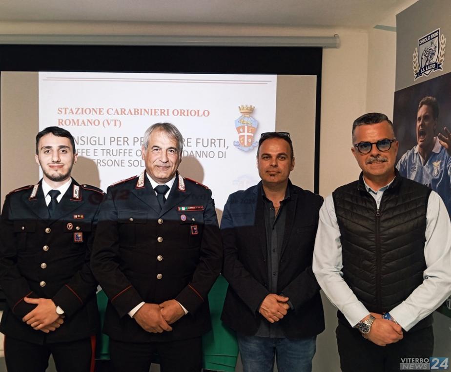 ORIOLO ROMANO - Si è svolto nel pomeriggio di martedì 21 aprile, con grande partecipazione e interesse da parte della cittadinanza, l'incontro dedicato alla prevenzione delle truffe organizzato dal Sodalizio Lazio Oriolo Romano 1900 unitamente ai militari della locale Stazione dei Carabinieri di Oriolo Romano. Presenti il Luogotenente c.s. Franco Scarnati e il Maresciallo Micheal Battilomo, che hanno guidato l'iniziativa con competenza e disponibilità.
