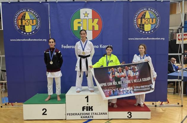 Thea Noceti è andata a medaglia anche nel kumite, vincendo l’oro negli esordienti -47 kg, Alessandro Vitale ha conquistato l’oro negli esordienti +60 kg ed Erico Koceku ha vinto l’oro nei juniores +75 kg.
