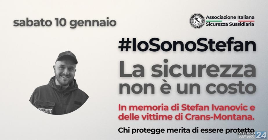 VITERBO - L'Associazione italiana sicurezza sussidiaria AISS promuove per sabato 10 gennaio un flashmob nazionale per commemorare le 40 vittime dell'incendio della discoteca 'Le Constellation' di Crans-Montana avvenuto nella notte di Capodanno e rendere in particolare onore a Stefan Ivanovic, il 31enne addetto alla sicurezza che ha sacrificato la propria vita per salvare decine di giovani. 'Stefan - ricorda AISS - era all'ingresso del locale, da solo senza un collega che lo potesse supportare, quando sono divampate le fiamme. Invece di mettersi in salvo, è entrato ripetutamente nel locale per trascinare fuori i clienti, molti dei quali minorenni. Non è più uscito. Il suo gesto eroico rappresenta l'essenza più profonda della professione di operatore della sicurezza: proteggere le persone, sempre'. Sabato 10 gennaio gli operatori della sicurezza di tutta Italia si raduneranno in divisa per accendere una candela bianca; osservare 1 minuto di silenzio; esporre il cartello: '#IoSonoStefan - La sicurezza non è un costo';