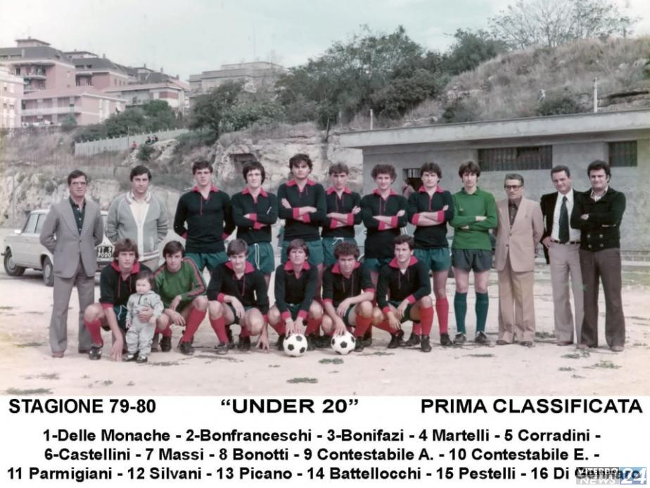 Nelle foto: la formazione del Tarquinia Calcio vincitrice del campionato Under 20 1979-1980, con il tecnico Sergio Gelli (assente alla cena perché indisposto) e alcuni dei dirigenti dell’epoca, a cominciare dal mitico presidente Angelo Riccioni; a distanza di 45 anni, la squadra riunita a cena.