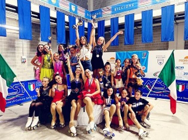 BOMARZO - Tornano a casa contente le 18 atlete della Ardita Pattinaggio sezione di Bomarzo che domenica 3 settembre hanno gareggiato al Campionato Nazionale ACSI 2023 nella città di Riccione, specialità solo dance divisione nazionale, gara di altissimo livello che richiama diverse Società da tutta Italia.