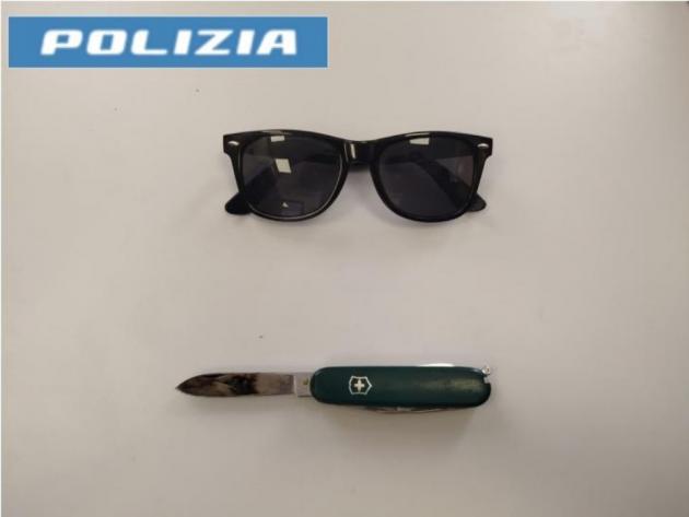 Ricevute le informazioni, gli agenti hanno organizzato un servizio di appostamento nel luogo indicato dalla vittima. All’arrivo del sospettato, è scattato il blitz: l’uomo è stato bloccato e trovato in possesso degli occhiali rubati e di un coltello multiuso.
