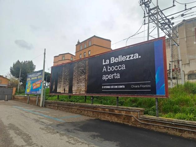 I manifesti celebrano alcuni interventi realizzati o in corso, a partire dall’illuminazione delle mura medievali, accompagnati da slogan a effetto come “La Bellezza. A bocca aperta” e richiami già noti come “Viterbo è ciò che conta”.